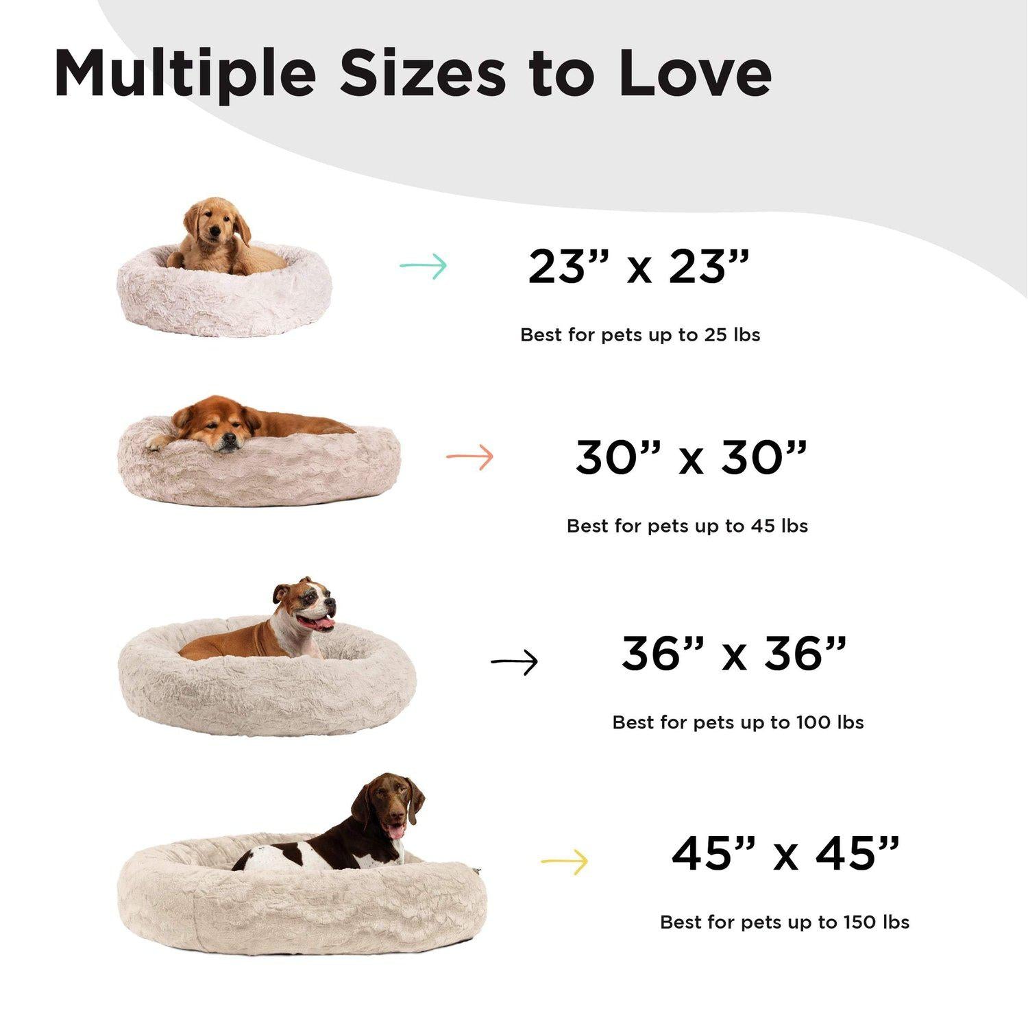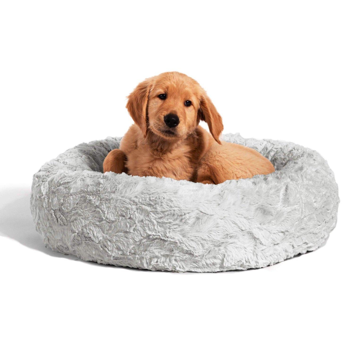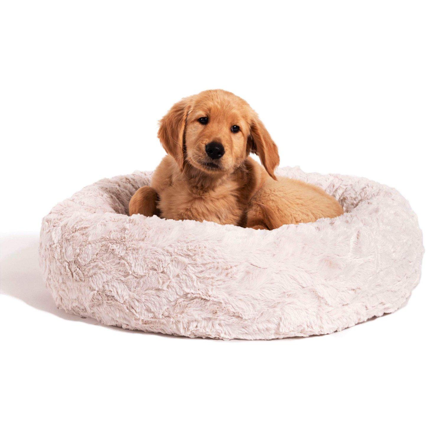 CALMING DOG BED SUPPORTS BETTER SLEEP: Thanks to its round shape, our high-quality Donut Cuddler puppy bed is ideal for pets who love to curl up! The raised rim creates a sense of security and provides head and neck support, while the super-soft filling offers joint and muscle pain relief
