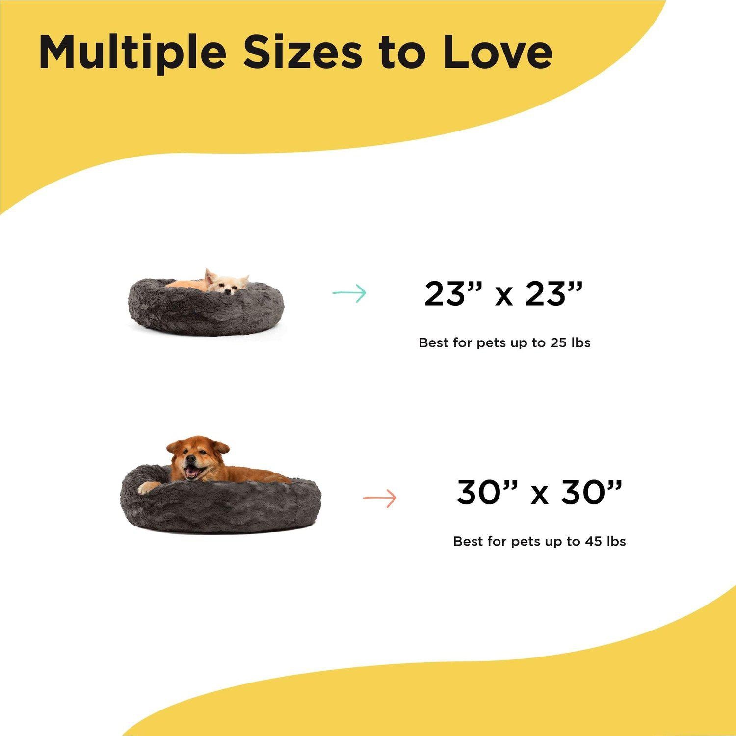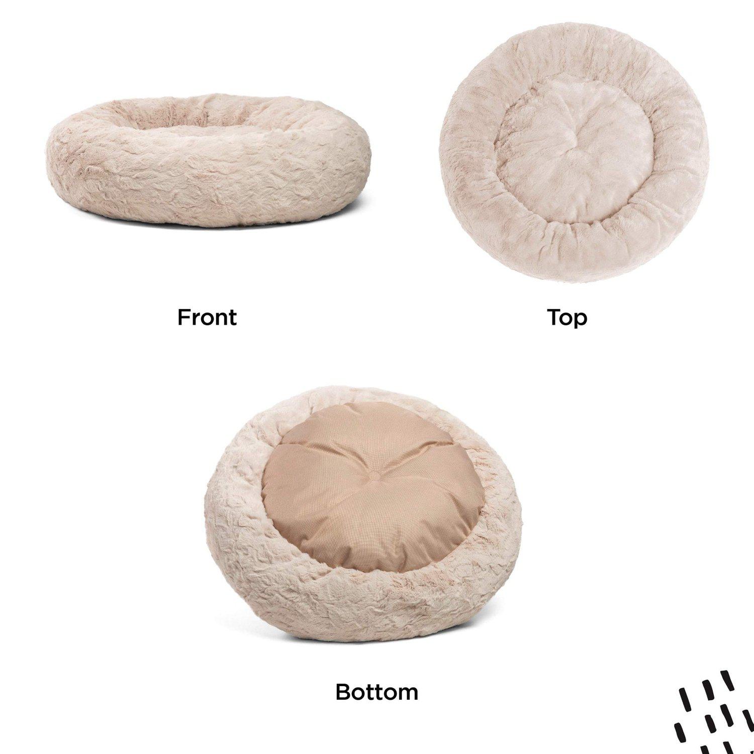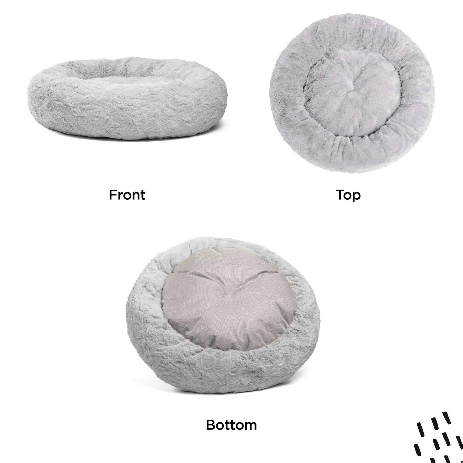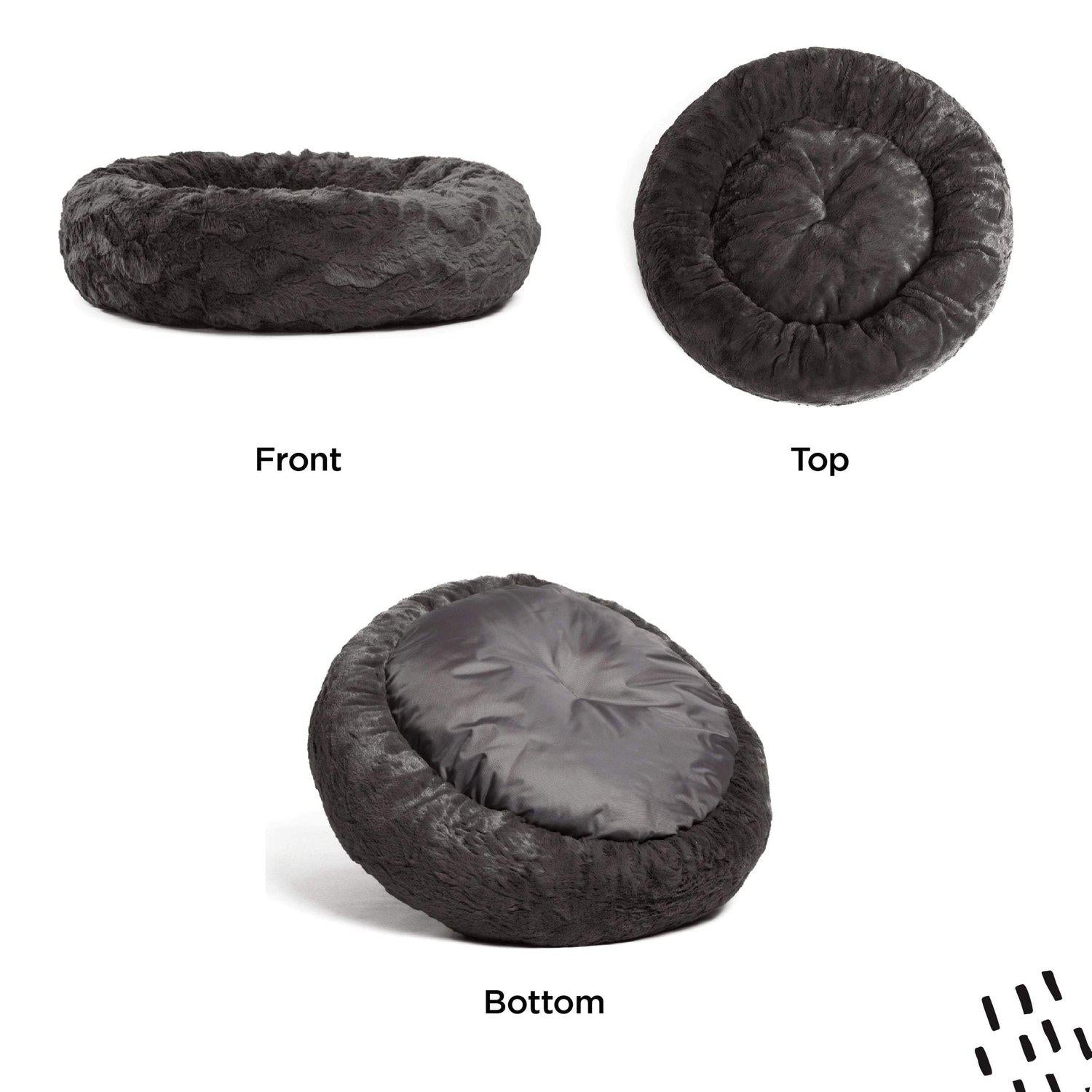 CALMING DOG BED SUPPORTS BETTER SLEEP: Thanks to its round shape, our high-quality Donut Cuddler puppy bed is ideal for pets who love to curl up! The raised rim creates a sense of security and provides head and neck support, while the super-soft filling offers joint and muscle pain relief