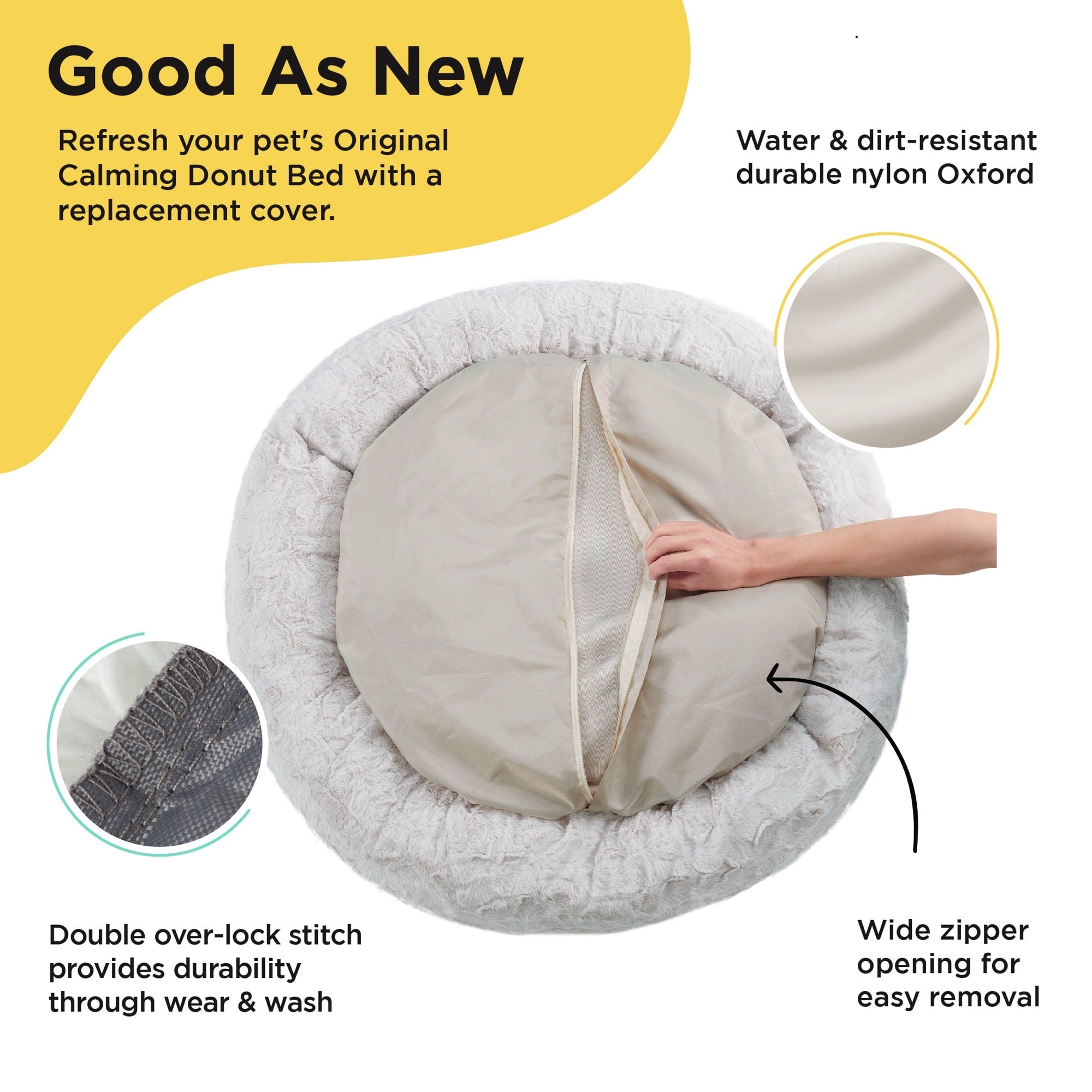 REPLACEMENT COVER: This replacement cover fits The Original Calming Donut Dog Bed (sold separately). Looking for a change up on color, or want additional covers during washes and messy clean ups? Now you can with removable zipper shells sold individually.