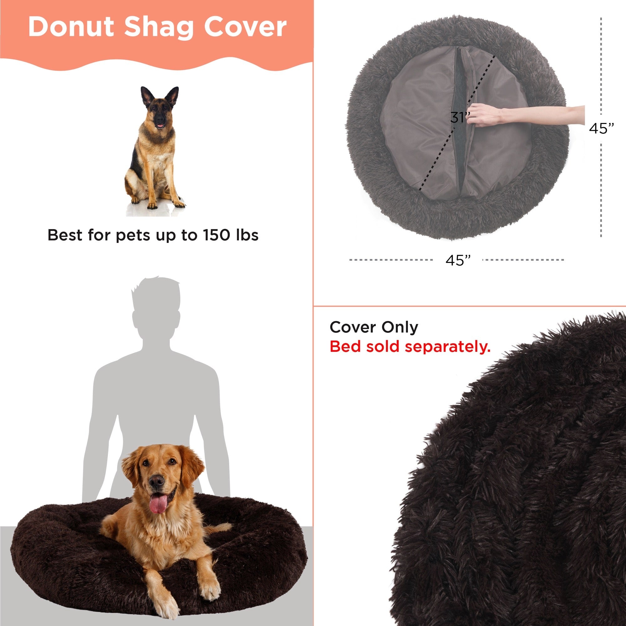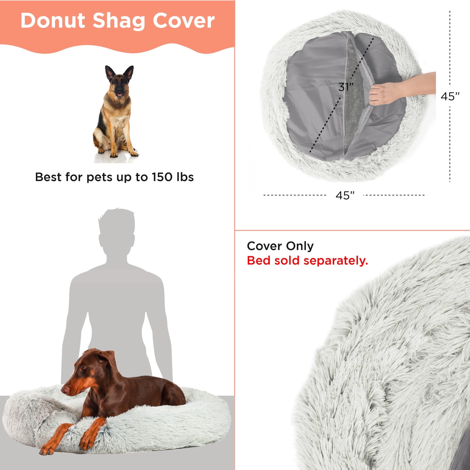 REPLACEMENT COVER: This replacement cover fits The Original Calming Donut Dog Bed (sold separately). Looking for a change up on color, or want additional covers during washes and messy clean ups? Now you can with removable zipper shells sold individually.