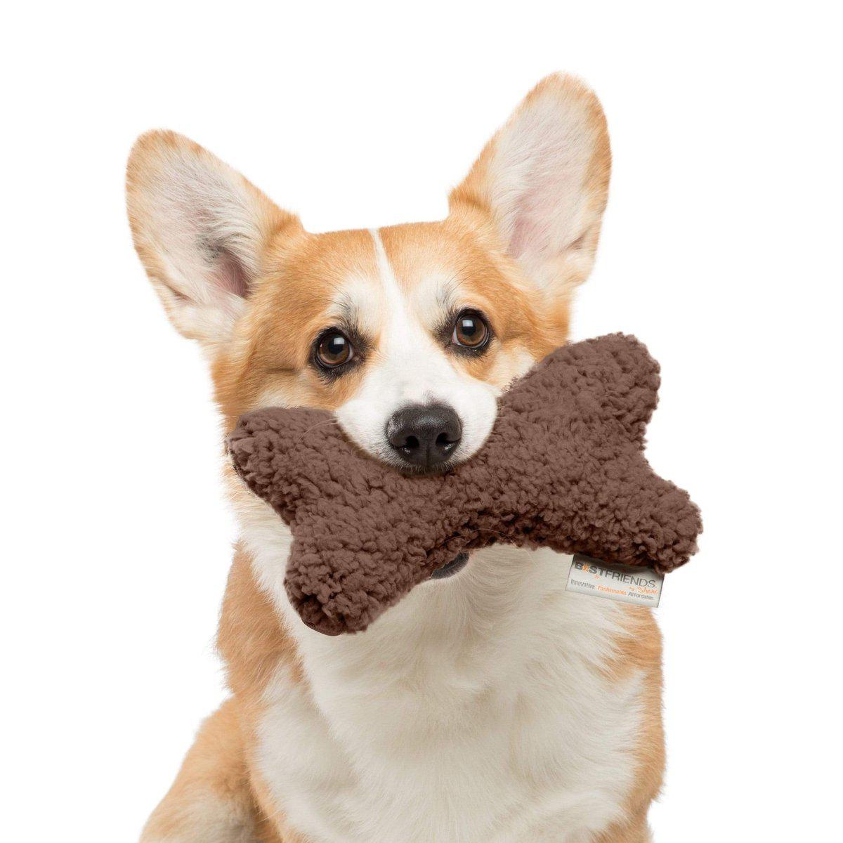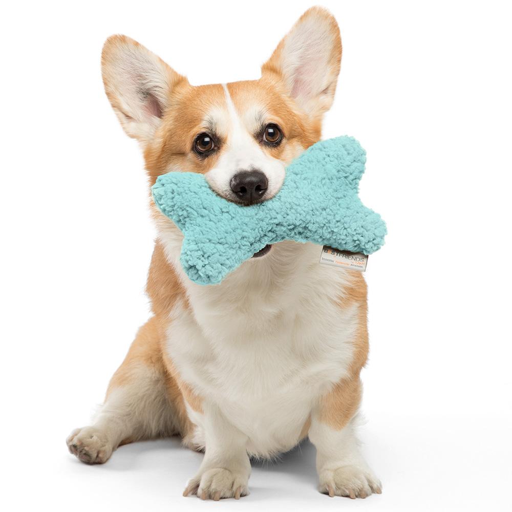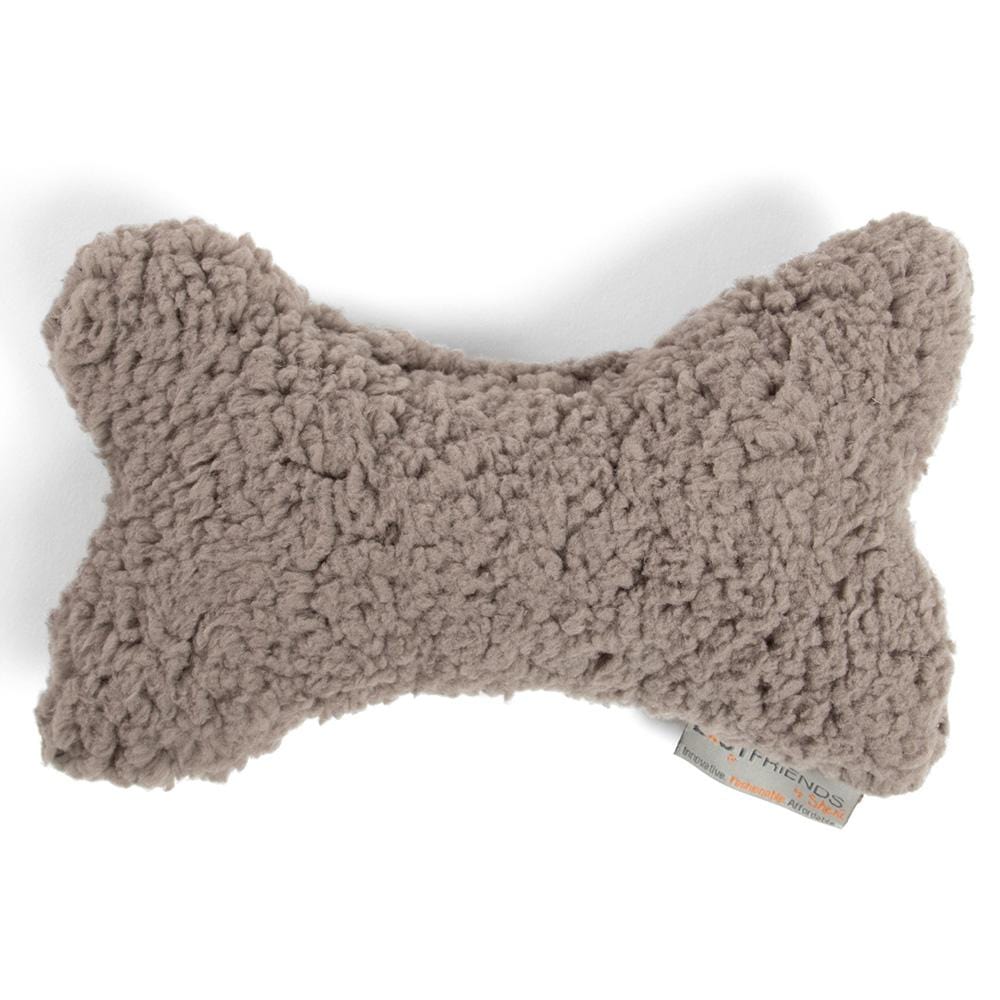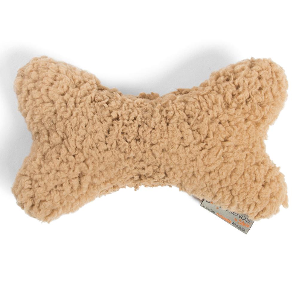 This soft plush bone will be your dog's best friend. Made with a Sherpa body, this bone can be used as a pillow to snuggle with or bring interactive fun to chew on. The toy includes two built in squeakers for stimulation and entertainment.